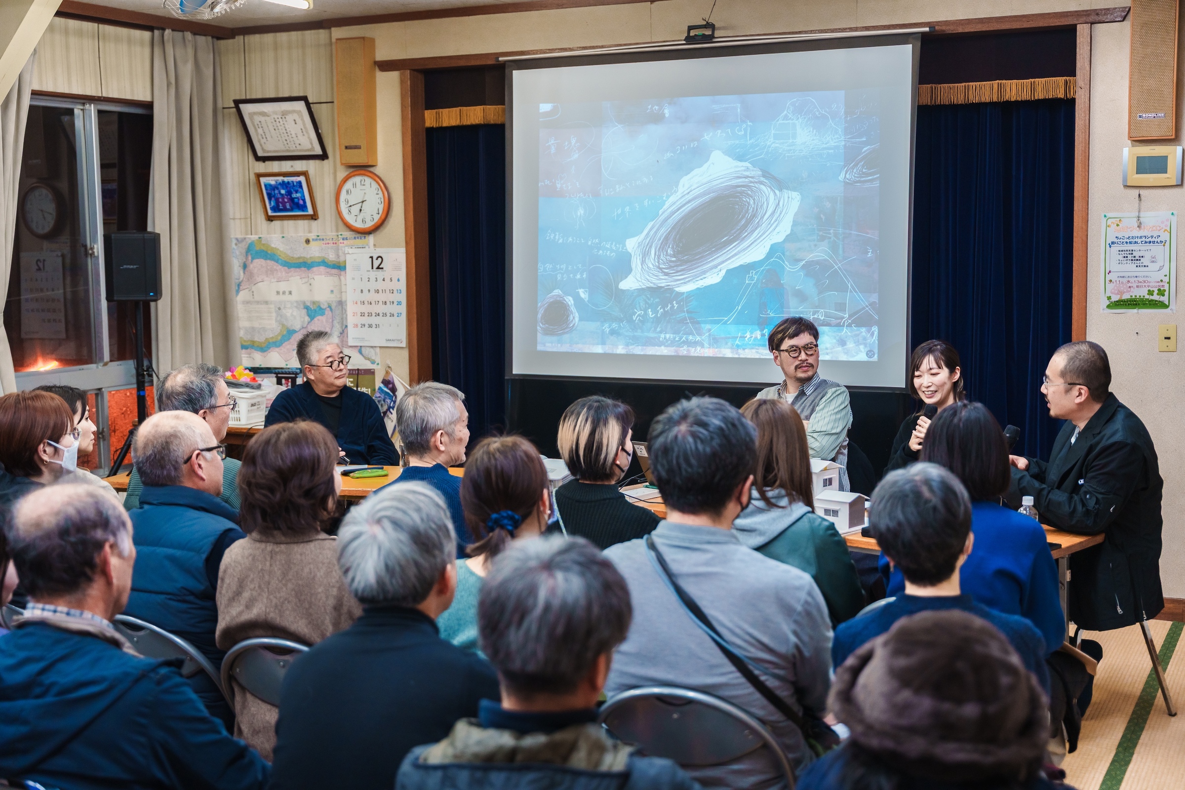 『space Ⅱ』の公開を記念して、2025年12月23日(火) にオープニングイベントとして「作品お披露目会」および「アーティスト・トーク」を開催。地域のみなさまとともに、鉄輪の新しい風景の誕生をお祝いしました。